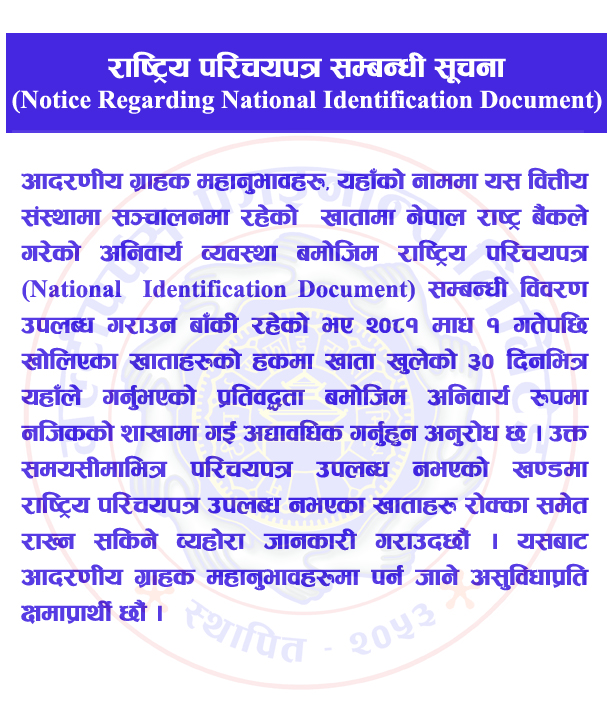 निक्षेप खाताकाे स्थायी लेखा नम्बर (PAN) अद्यावधिक गर्ने बारे अत्यन्त जरूरी सूचना ।